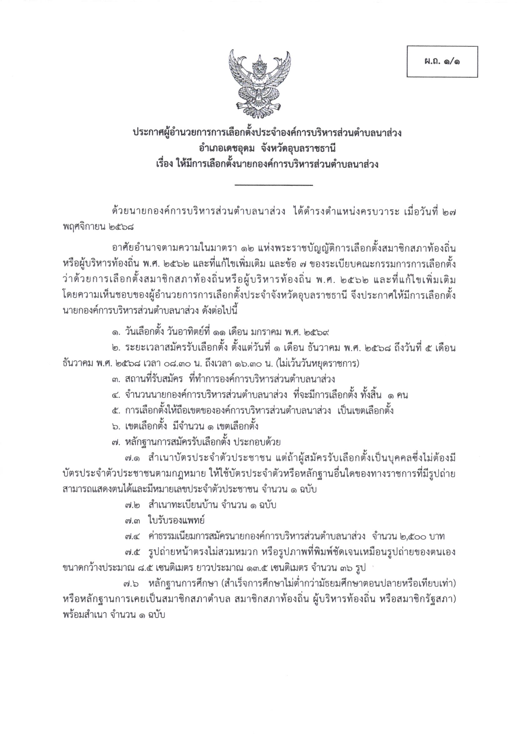 ประกาศผู้อำนวยการการเลือกตั้งประจำองค์การบริหารส่วนตำบลนาส่วง เรื่อง ให้มีการเลือกตั้งนายกองค์การบริหารส่วนตำบลนาส่วง
