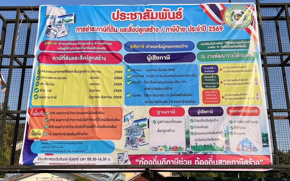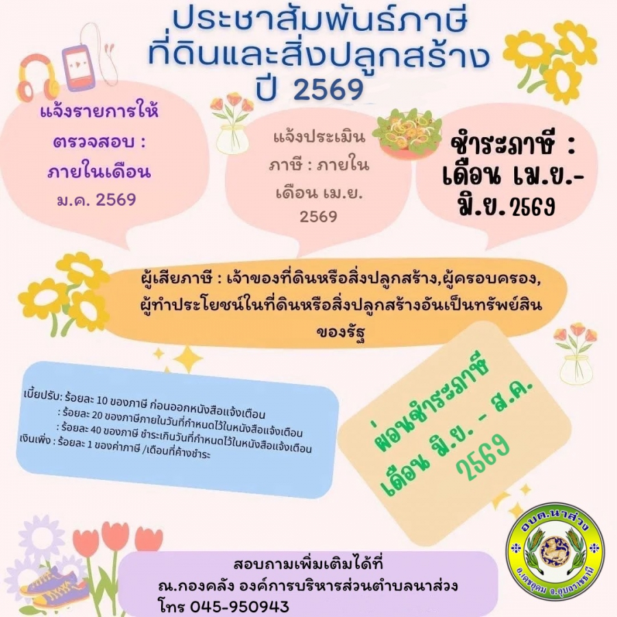 แจ้งประชาสัมพันธ์ภาษีที่ดินและสิ่งปลูกสร้าง และภาษีป้าย ประจำปี พ.ศ.2569