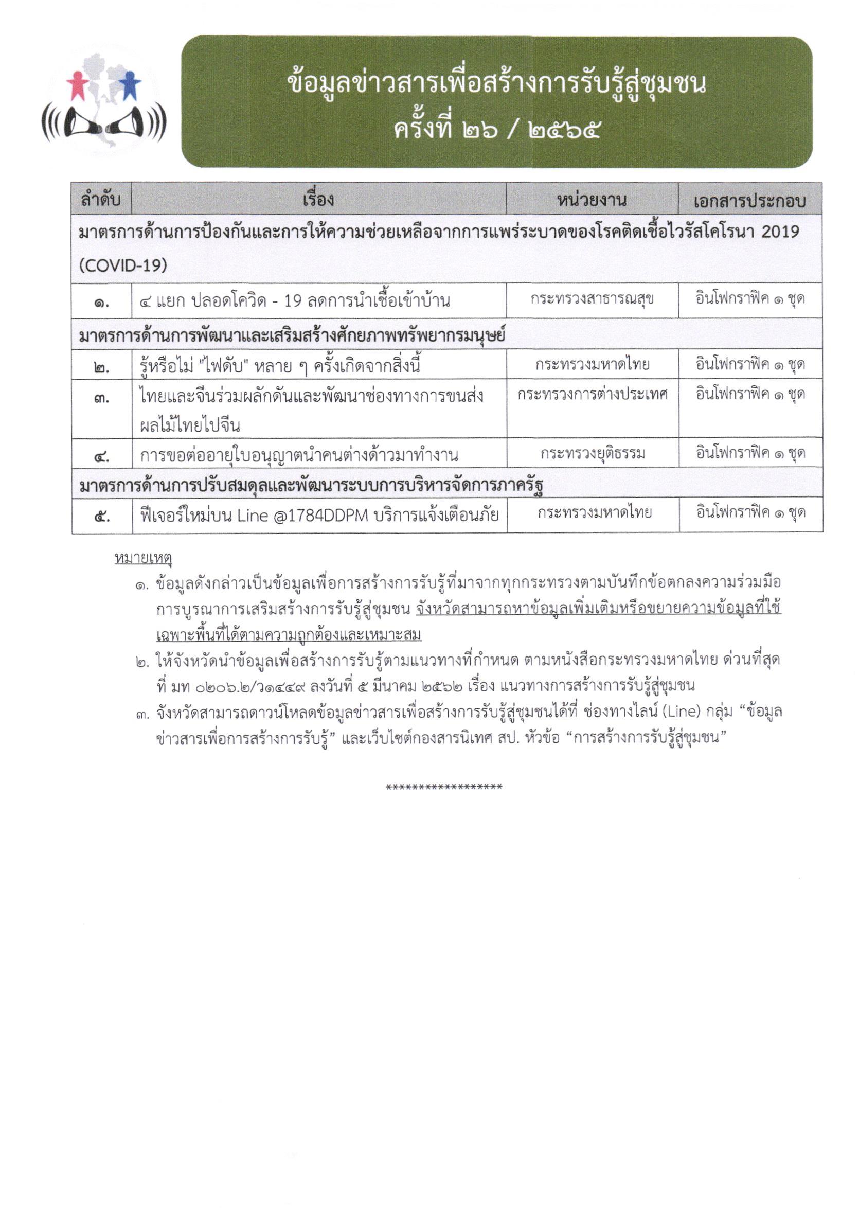 ข้อมูลข่าวสารเพื่อสร้างการรับรู้สู่ชุมชน ครั้งที่ 26/2565