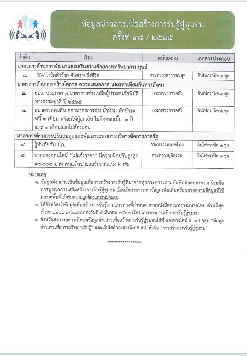 ข้อมูลข่าวสารเพื่อสร้างการรับรู้สู่ชุมชน ครั้งที่ 38/2565