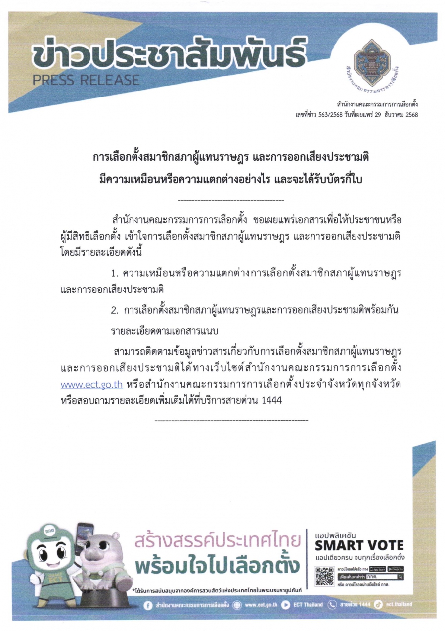 ประชาสัมพันธ์การเลือกตั้งสมาชิกสภาผู้แทนราษฎรและการออกเสียงประชามติมีความเหมือนหรือความแตกต่างอย่างไร และจะได้รับบัตรกี่ใบ