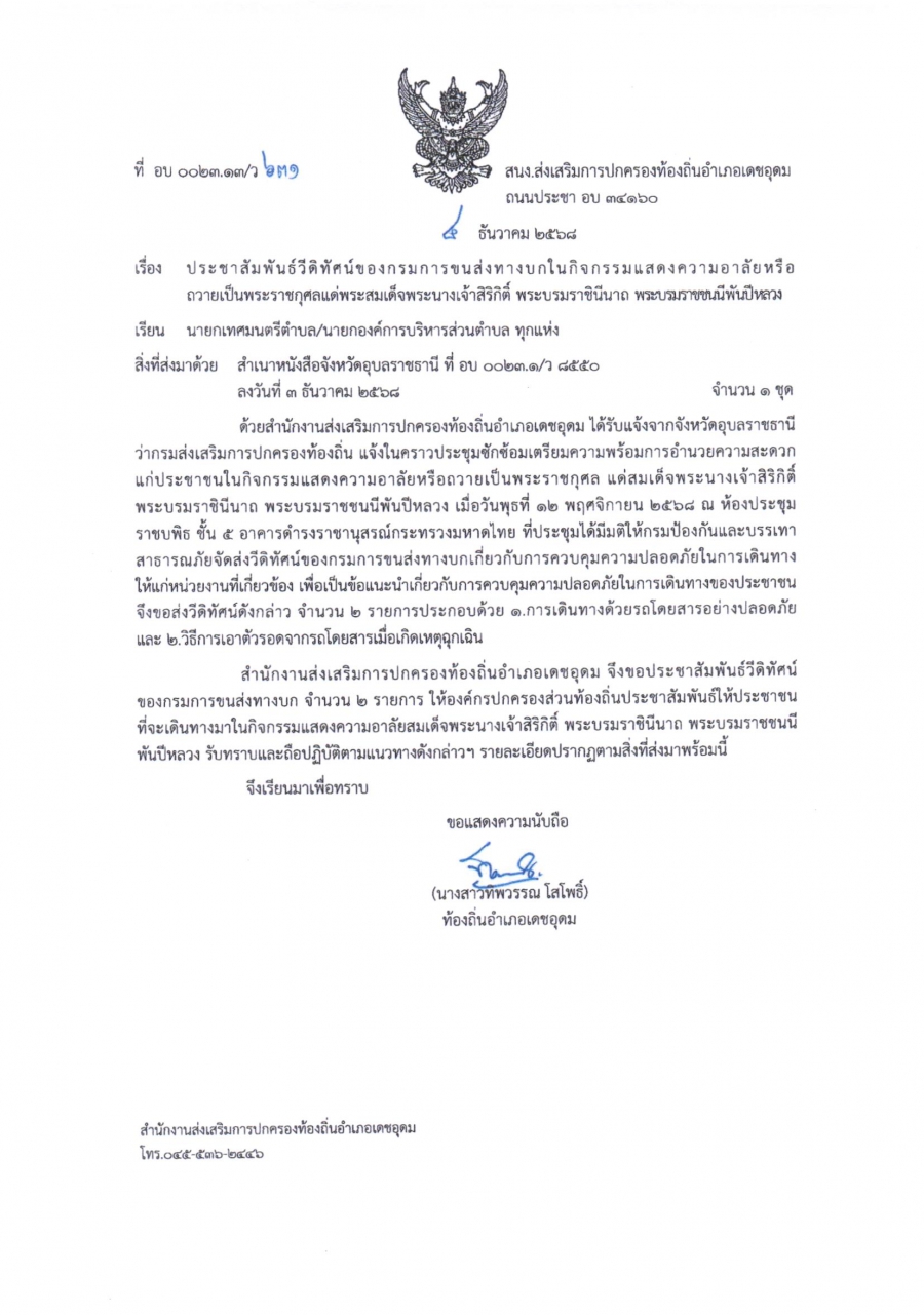 อบต.นาส่วง ประชาสัมพันธ์วีดีทัศน์ของกรมการขนส่งทางบกในกิจกรรมแสดงความอาลัย